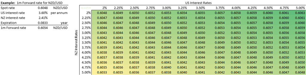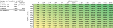 Impact of NZ and US Interest Rate Changes on the 1-Month NZD/USD Forward Rate.