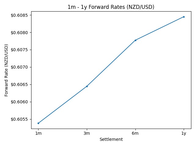 NZD/USD 1 month to 1 year forward rates using IRP.